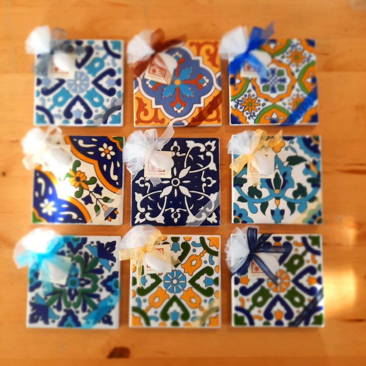 Il Laboratorio offre una vasta gamma di bomboniere interamente realizzate a mano e personalizzabili: sacchettini profumati, scatoline, piantine grasse, fialette di spezie, mattonelle, saponi artigianali, prodotti enogastronomici e molto altro.